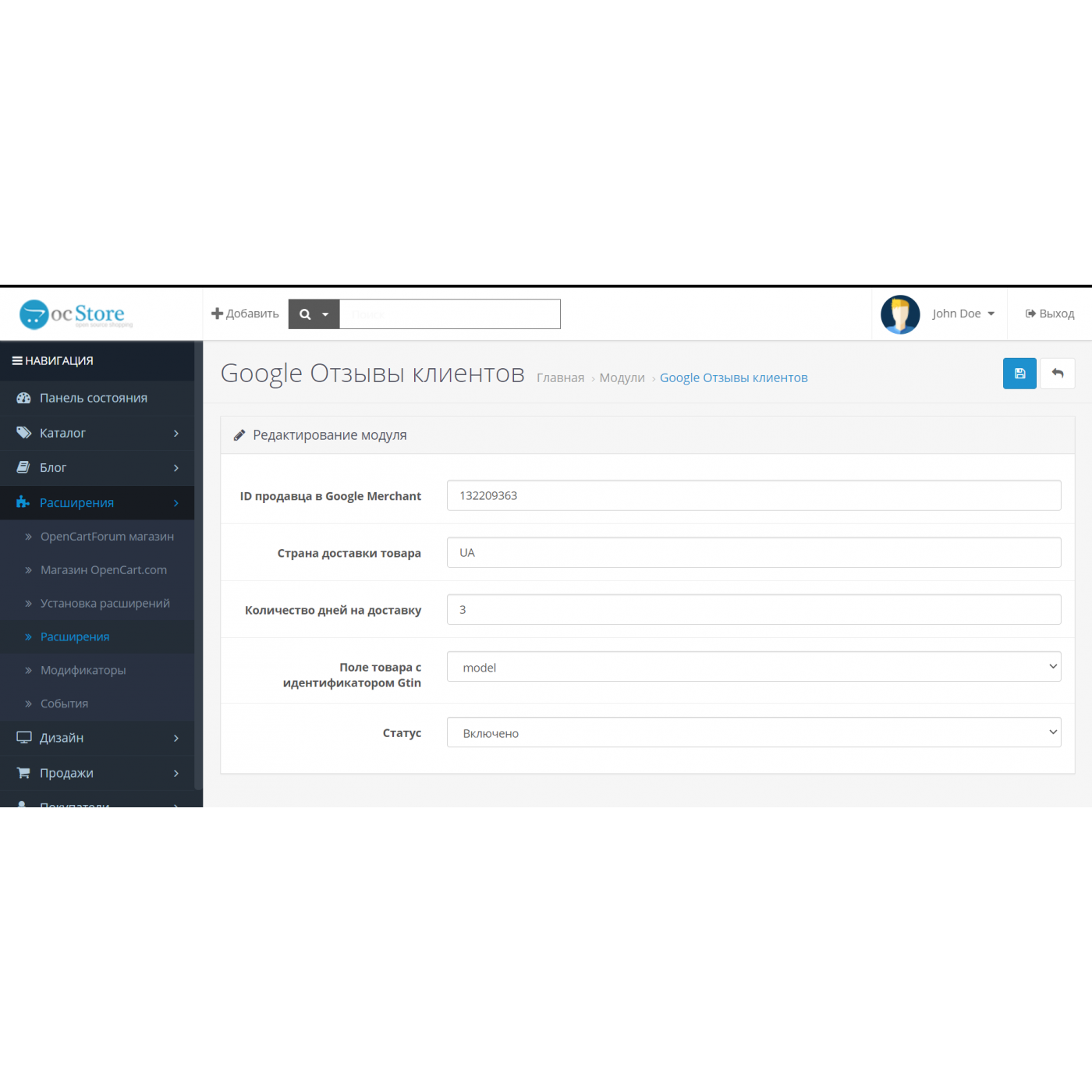 Google Відгуки клієнтів (Google Reviews) для Opencart 1.0.2